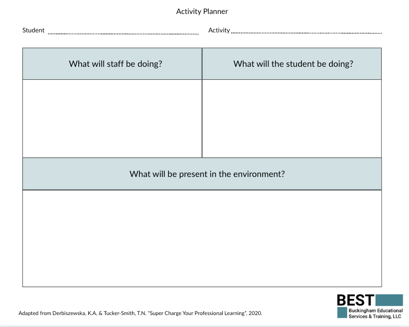 BEES Planning Tool– For use when planning how to use strategies and teach Executive Function Skills for a specific student or class.